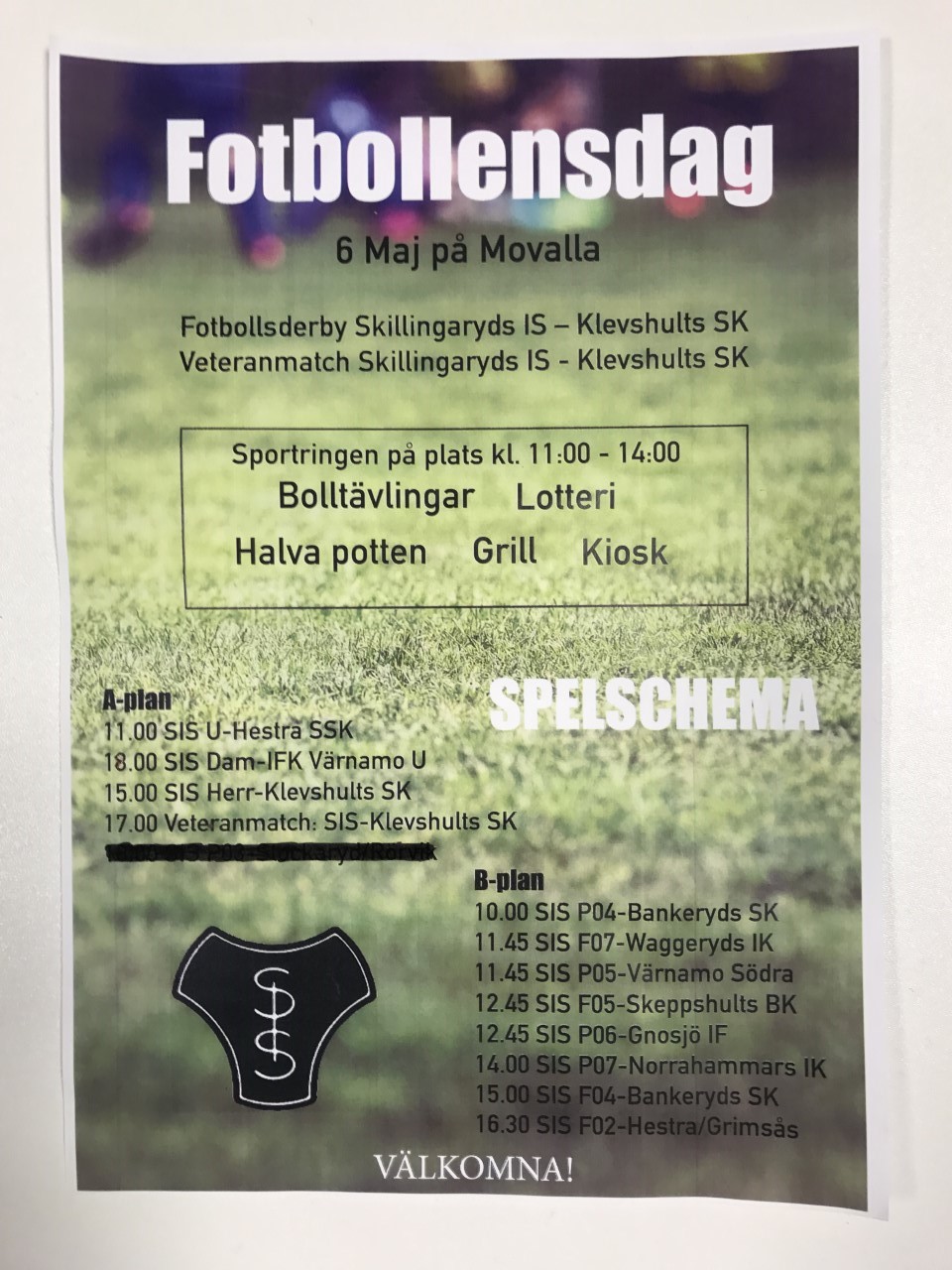 Från 10.00 på morgonen till 19.00 på kvällen pågår det fotbollsmatcher på Movalla. Alla seriespelande lag deltar! Höjdpunkten är givetvis Derbyt mellan SIS och KSK.