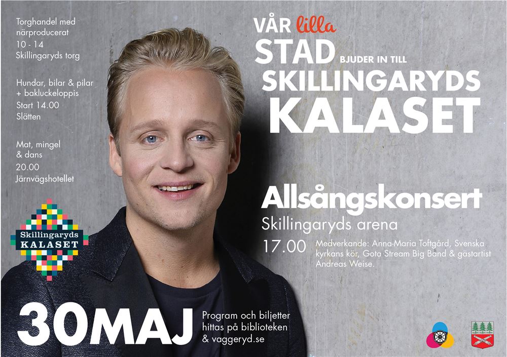 ”Vår lilla stad” bjuder in till Skillingarydskalaset lördagen den 30 maj. Det blir torghandel, bakluckeloppis, allsång & underhållning med gästartister och mycket mer.
