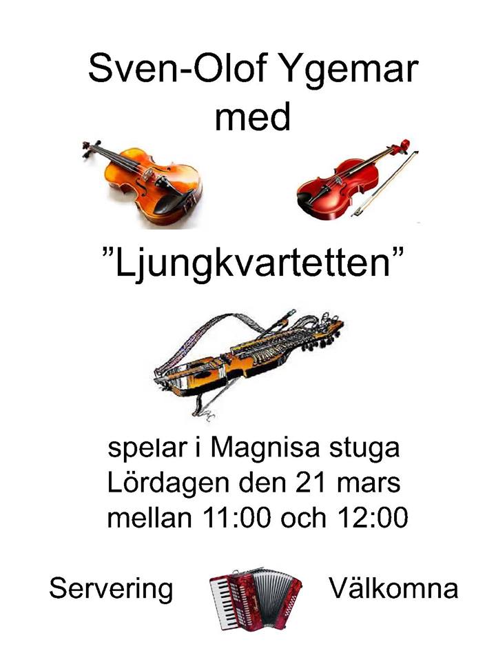 Sven-Olof Ygemar med Ljungkvartetten spelar i Magnisa stuga. Servering! Välkomna!