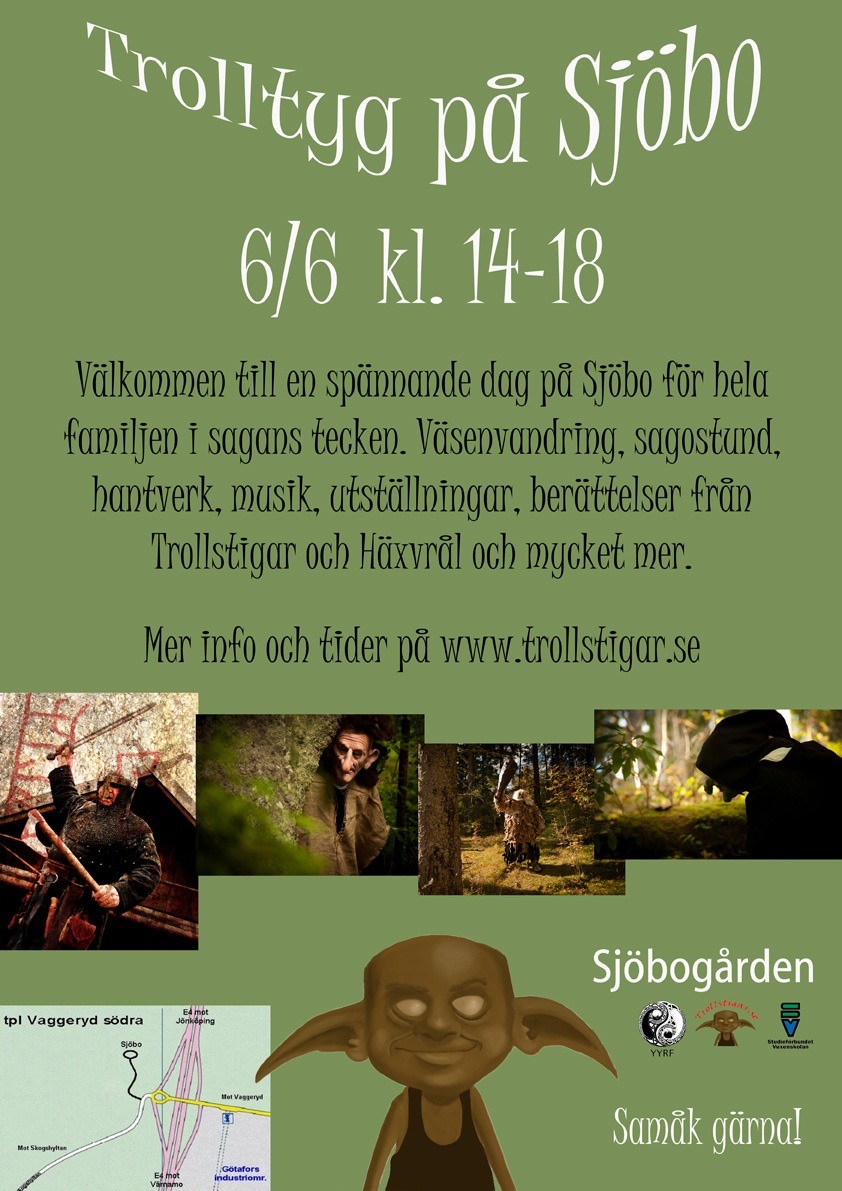 Välkommen till en spännande dag på Sjöbo för hela familjen i sagans tecken. Väsenvandring, sagostund, hantverk, musik, utställningar, berättelser från Trollstigar och Häxvrål. Och mycket mer.